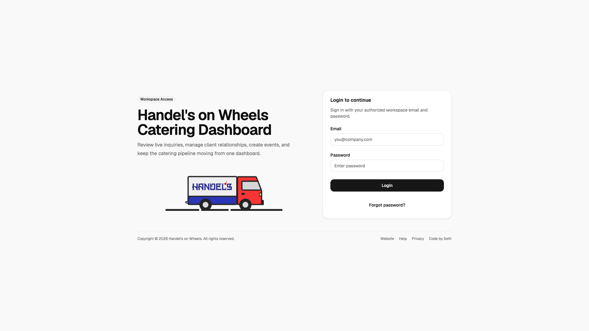 Handel's on Wheels needed a dedicated catering portal separate from their main brand site — one that could convert event inquiries without friction and present multi-tier packages without overwhelming the visitor.