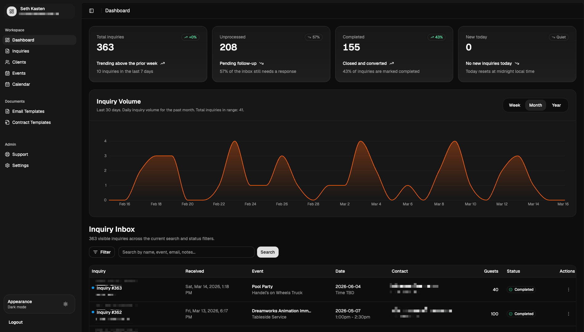 Built a focused catering hub with a clean information hierarchy: service tiers presented side by side for easy comparison, a streamlined inquiry form that captures all relevant event details upfront, and a layout that funnels attention directly toward conversion.